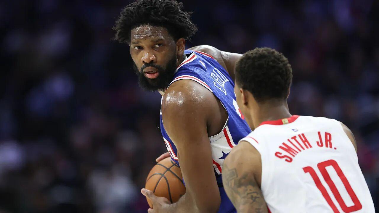 下半场,恩比德的状态依然火热,只要给他机会单打,恩比德就能把球权换成得分,而且这期间恩比德可以说把火箭大个们打了个遍——篮下转身直接顶飞申京、单打芬尼史密斯后仰中投、迎着杜兰特投进三分、背打伊森的轻松上篮。